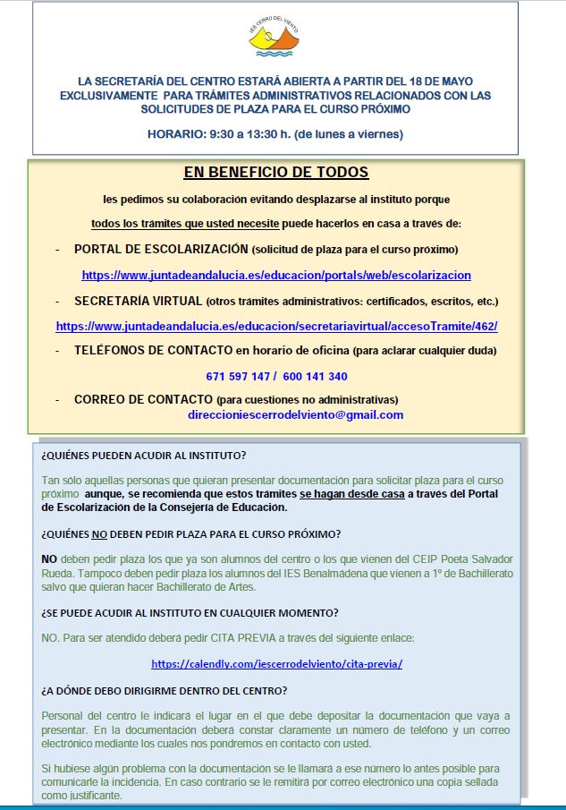 Apertura para trámites administrativos.